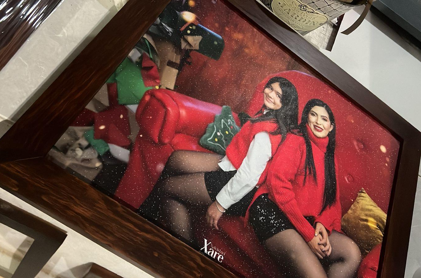 - 2 Fotografías enmarcadas (Laminado/Montado/Marco de madera: Color Nogal)